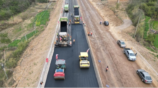 3月7日上午,在G330一期錢鋪段路面上,數(shù)臺攤鋪機和壓路機正在進行瀝青攤鋪和路面平整工作,經(jīng)過工人們數(shù)個小時的連續(xù)奮戰(zhàn),順利完成試驗段瀝青下面層鋪筑任務(wù),意味著G330銅陵段一級公路改建工程(一期)正式進入瀝青路面施工階段。