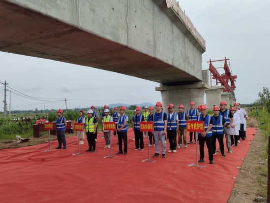 本次演練采取現(xiàn)場實戰(zhàn)演練的方式,充分模擬在T梁架設過程中,作業(yè)人員失穩(wěn)高處墜落受傷,需要立即啟動應急響應程序的場景。演練過程中,在指揮長的統(tǒng)一指揮下,各小組分工明確、銜接順暢、反應迅速、處置得當,各環(huán)節(jié)協(xié)調配合連貫,演練過程井然有序,各項工作均在預定時間內完成,達到了演練預期效果。