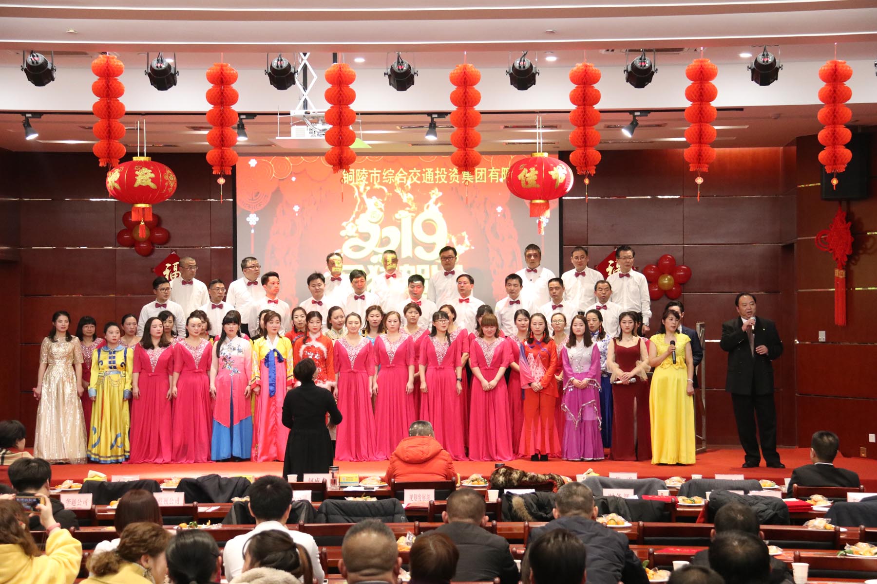 17時30分,晚會在大合唱《春天的故事》中拉開序幕,深情恢弘的演唱瞬間感染了在場所有人。朗誦《相約今天 展望未來》、二胡演奏《紫色激情》、歌曲《我的未來不是夢》、《驛動的心》、《東方之珠》、《明天會更好》、《外面的世界》等節(jié)目展現(xiàn)了集團(tuán)公司全體職工對未來幸福新生活的向往與憧憬。手勢舞《中華民族》、舞蹈《今夜無眠》、相聲《不忘初心》、《三句半》等節(jié)目贏得了全掌觀眾陣陣掌聲,將整場演出推向了高潮,晚會在合唱《拜新年》的歌聲中緩緩落下帷幕。美好的祝福在歌聲里傳遞,新年的激情在舞姿中釋放。整場聯(lián)歡會以歌舞為主,匯聚了器樂、朗誦、小品、曲藝等各種藝術(shù)形式,訴說著交投兒女自己的故事。