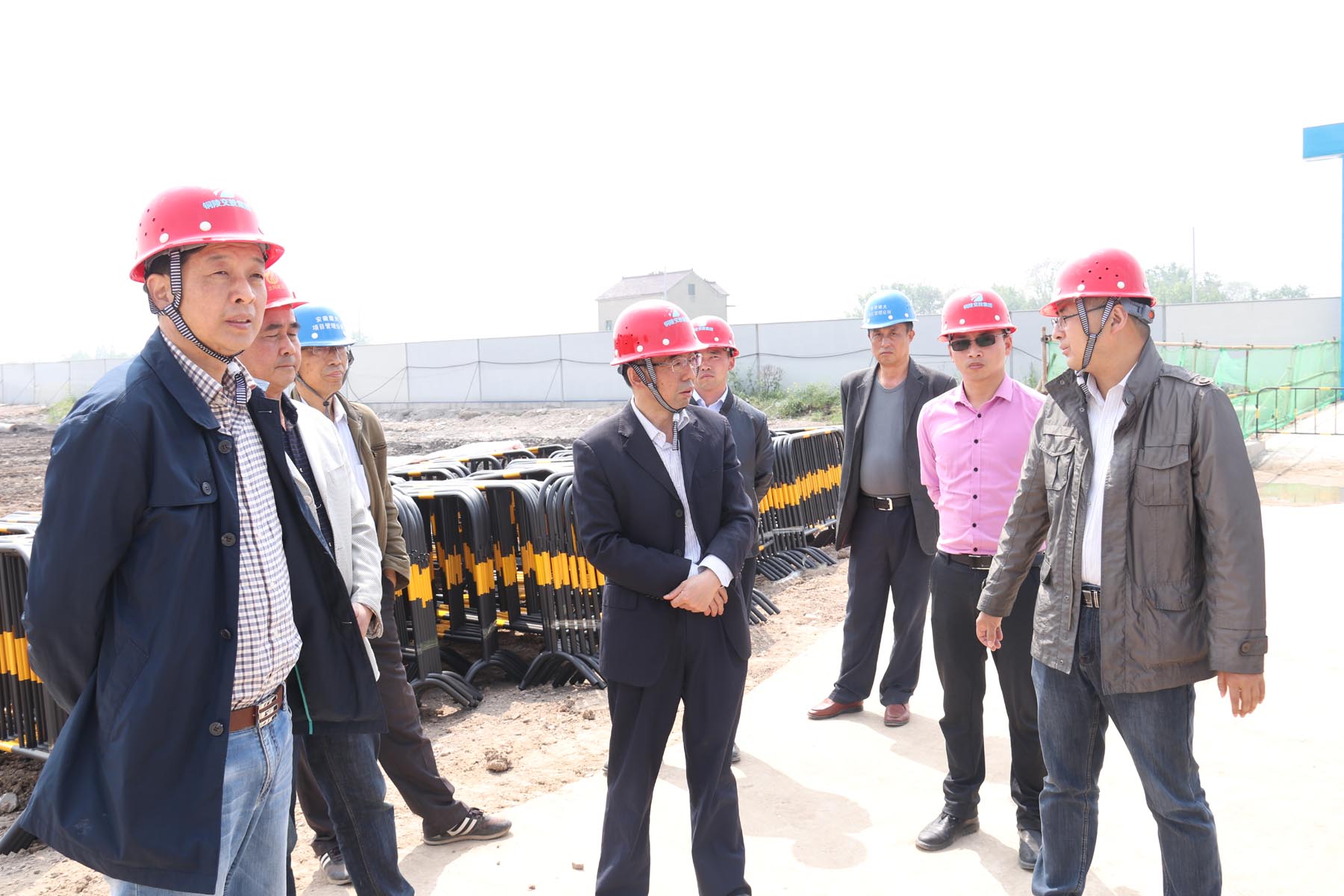 章新華一行首先來到項目施工現(xiàn)場查看項目施工情況,聽取工程進度以及安全文明施工等有關(guān)情況匯報,并就項目管理及風險防控有關(guān)事項與相關(guān)人員進行交流。