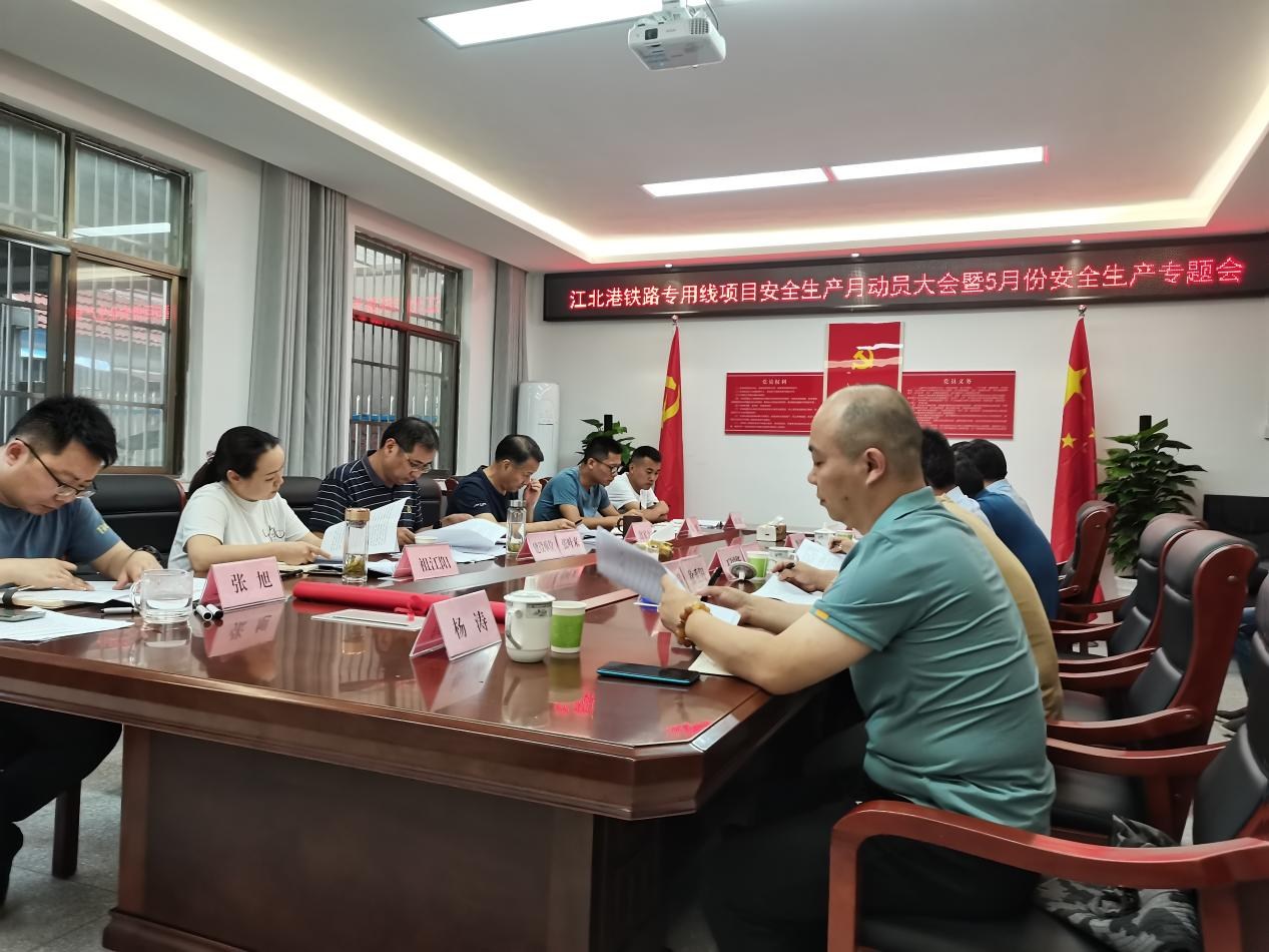 6月1日上午,江北港鐵路專用線公司組織召開項(xiàng)目安全生產(chǎn)月動員大會暨5月份安全生產(chǎn)專題會。
