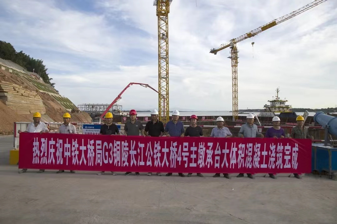 7月2日下午5時(shí),G3銅陵長江公鐵大橋4號(hào)主墩承臺(tái)最后一次混凝土順利澆筑完成,至此,大橋南主塔承臺(tái)施工收官,正式轉(zhuǎn)入塔座施工階段。