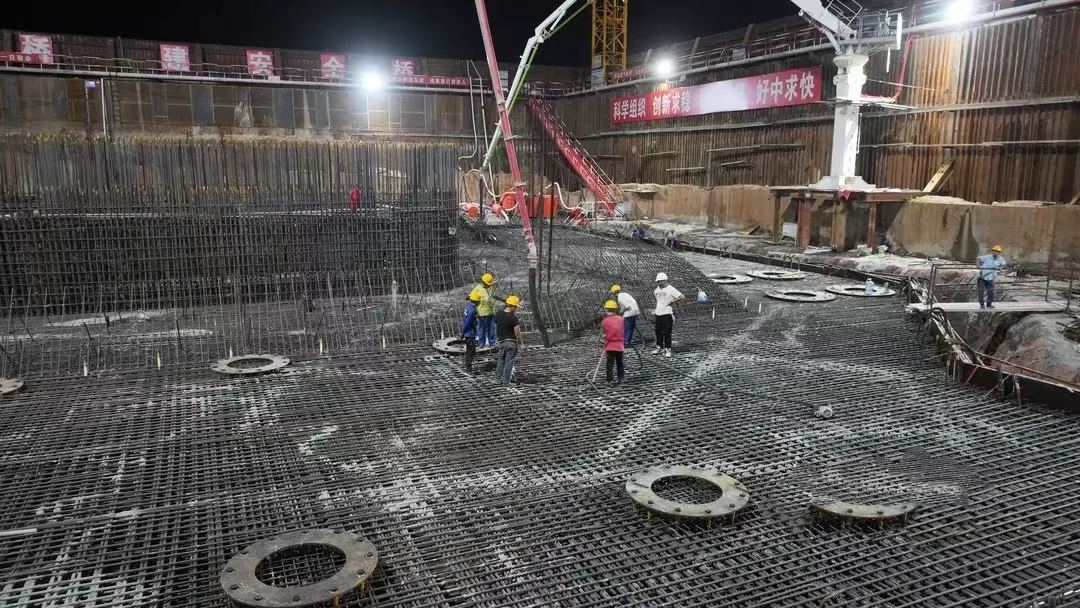 據(jù)悉,自6月7日晚11時(shí)40分開啟首次澆筑,大橋局的建設(shè)者們僅用時(shí)24天就完成了主墩承臺(tái)大體積混凝土的澆筑工作。4號(hào)主墩承臺(tái)共澆筑混凝土23614.5立方,消耗鋼筋3498.3噸。4號(hào)主墩承臺(tái)的成功澆筑,標(biāo)志著大橋南岸主墩將進(jìn)入可視化施工階段。