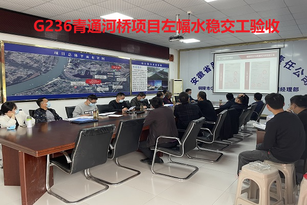 5月12日上午,G236青通河大橋改建工程左幅水泥穩(wěn)定碎石基層順利通過交工驗收。