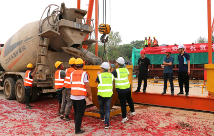 8月23日,經(jīng)過4小時的連續(xù)施工,江北港鐵路專用線項目首榀預應力簡支T梁在中鐵十六局集團銅陵郊區(qū)制梁場順利澆筑完成,標志著該預制梁場已經(jīng)具備正常生產(chǎn)條件,同時也為后期制梁認證和批量生產(chǎn)創(chuàng)造了有利條件,同時標志著項目銅陵市段由下部施工轉到上下部結構同步施工的快速化推進階段,為全線工程順利推進奠定了堅實的基礎。