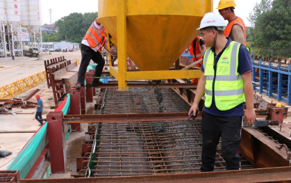為確保本次首梁澆筑順利開展,中鐵十六局項目團隊精心組織,統(tǒng)籌安排,從施工組織、材料設備、人員配置、鋼筋加工與模板安裝、混凝土原材料等各環(huán)節(jié)嚴格按照標準化施工要求進行。 同時,積極開展對施工隊伍的技術、安全交底,嚴格現(xiàn)場技術監(jiān)控和安全質量管理,保障了首梁澆筑過程的連續(xù)、規(guī)范。