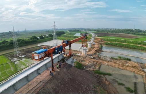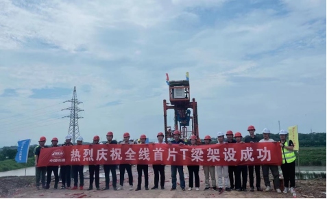 7月6日上午10點10分,在銅陵港江北港區(qū)鐵路專用線項目施工現(xiàn)場,隨著全線首片長32米,重140噸的預(yù)制T梁平穩(wěn)精準架設(shè)在章家院特大橋0號臺至1號墩上,標志著江北港鐵路專用線項目首片T梁架設(shè)成功,橋梁架設(shè)施工正式拉開帷幕,項目建設(shè)駛?cè)肟燔嚨馈?